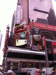 After this, we did a little more shopping and walking around Times Square, had lunch at another salad shop called Hale and Hearty, and then stopped by Roxy's to get some cheesecake. Of course we went back to M&M and Hershey's to get our daily sample of candy. Then went back to the hotel to get a quick nap and get ready for The Lion King.